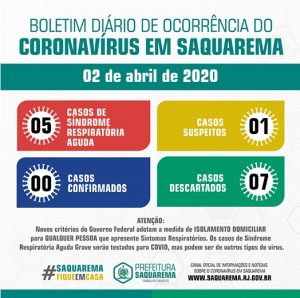 Vale ressaltar que, de acordo com a nova Portaria 454/2020, do Ministério da Saúde, QUALQUER PESSOA que apresente SINTOMAS RESPIRATÓRIOS deverá adotar a medida de Isolamento Domiciliar. A mesma Portaria define que os casos de Síndrome Respiratória Aguda Grave deverão ser testados para Covid-19, CONTUDO, poderão dar resultado para outro tipo de vírus.