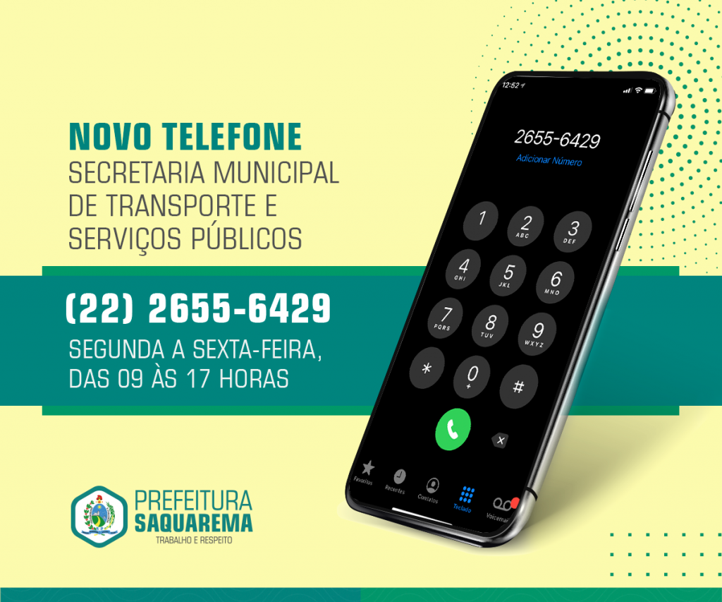 Agora está mais fácil tirar dúvidas, buscar atendimentos e ter informações sobre a Secretaria de Transporte e Serviços Públicos de Saquarema! Anote o novo telefone e tenha-o sempre em mãos. O número é (22) 2655-6429.