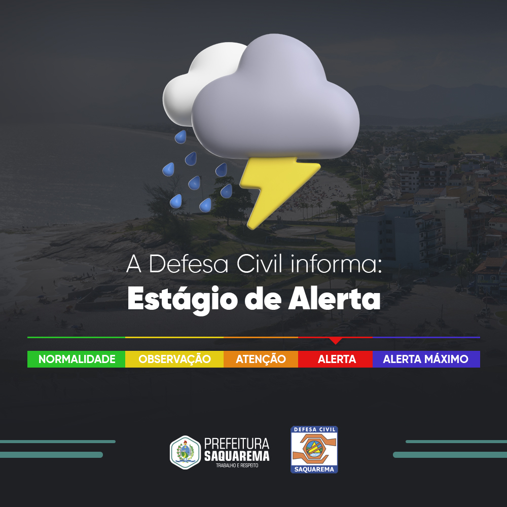 A Defesa Civil de Saquarema entrou em Estágio de Alerta, o quarto em uma escala de 5. A mudança de nível ocorre devido ao avanço da frente fria sobre a região.