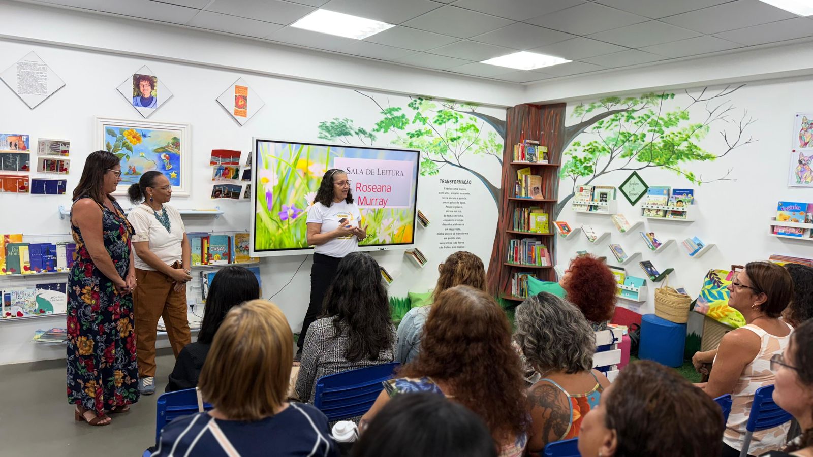 Como parte das celebrações, mais de 40 professores da educação infantil ao 5º ano da rede municipal participaram de uma oficina de poesia com a escritora que nomeia a sala. Durante o encontro, os docentes mergulharam nas diversas formas de poesia e mergulharam na obra da autora homenageada, que possui mais de 100 livros publicados.