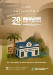 A Prefeitura de Saquarema, por meio da Secretaria Municipal de Educação, Cultura, Inclusão, Ciência e Tecnologia, celebra os 28 anos da Casa de Cultura Walmir Ayala, um dos espaços culturais mais importantes e tradicionais do município. Para marcar esta data especial, será realizada uma programação comemorativa com recital, sarau e a formatura dos alunos de piano, destacando o talento e a dedicação dos estudantes que se desenvolvem artisticamente no local.