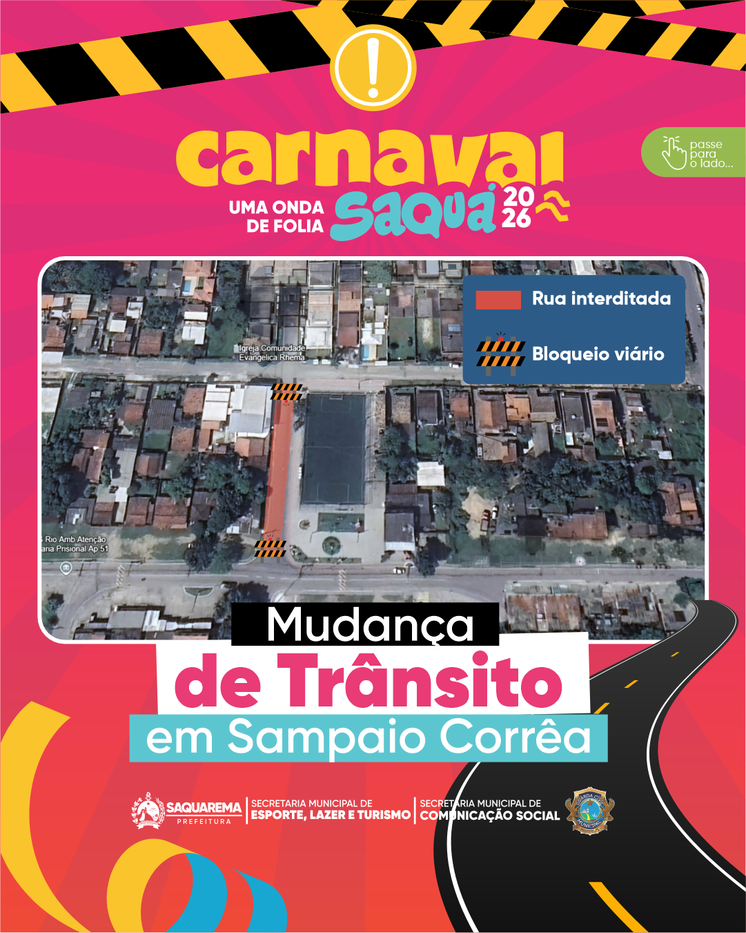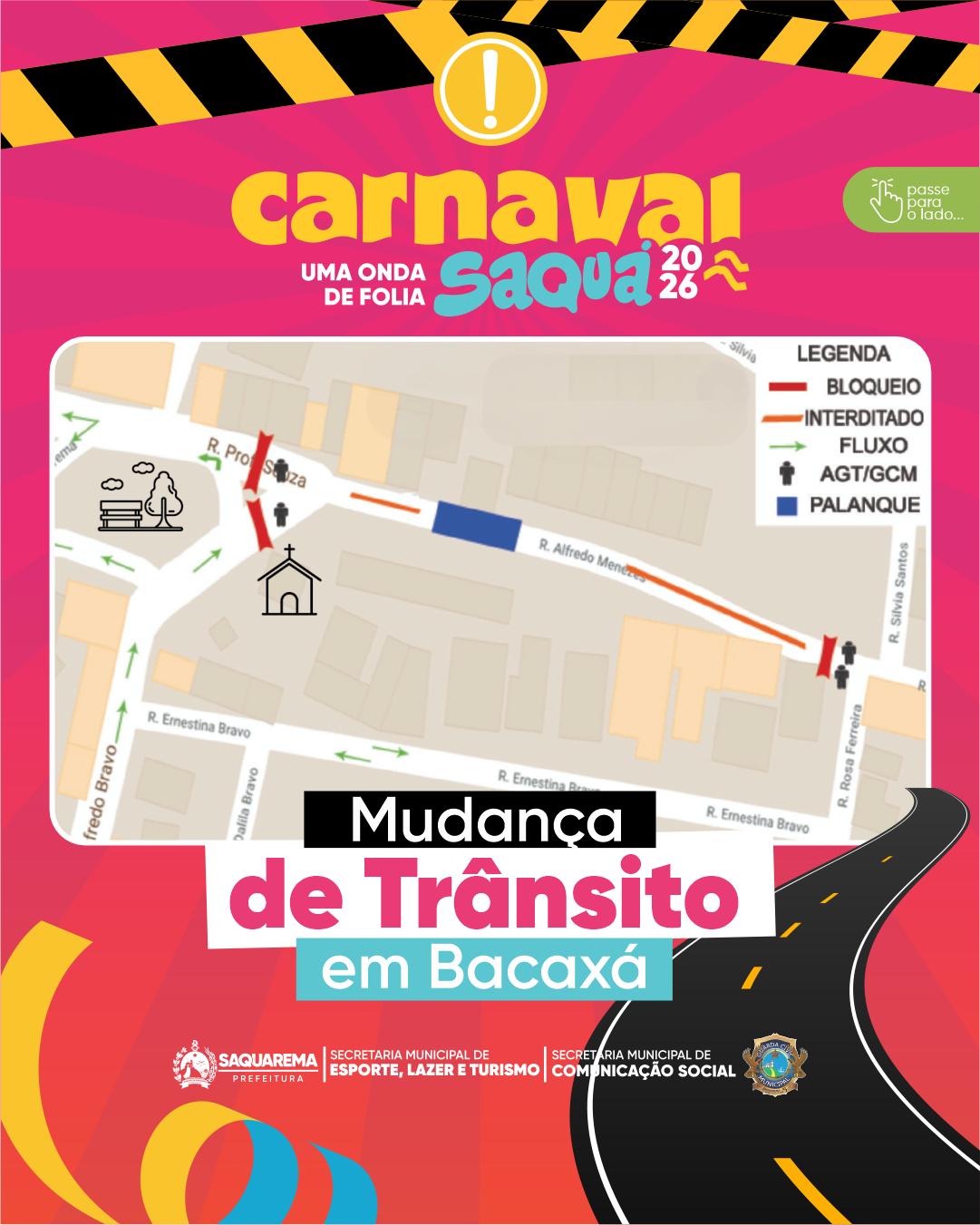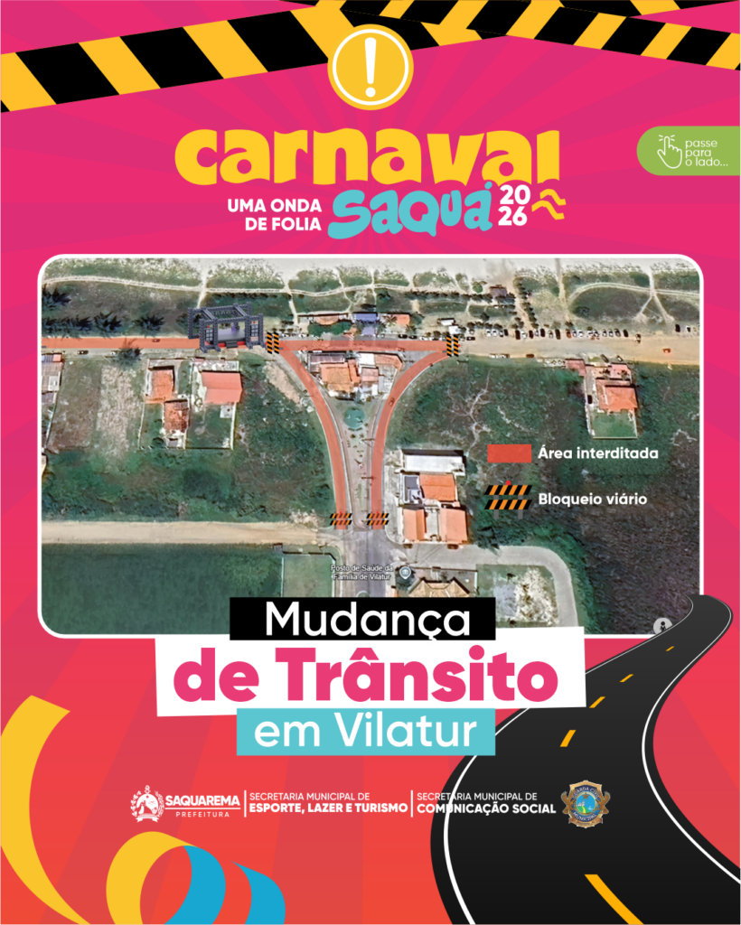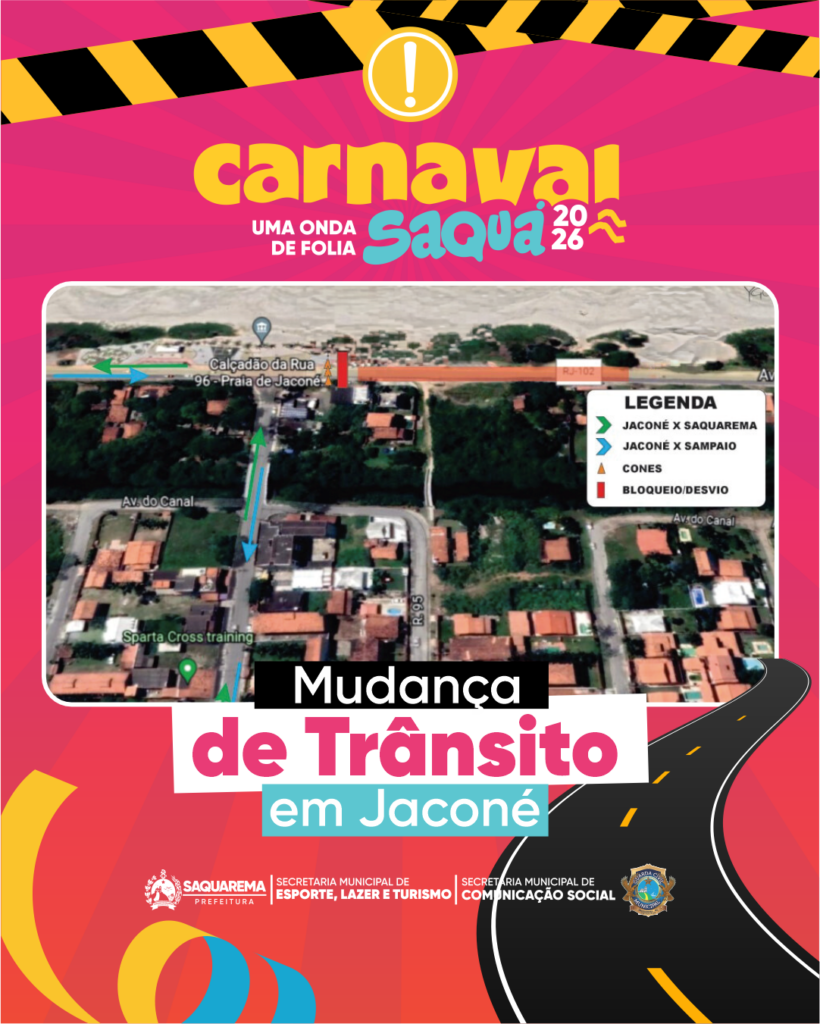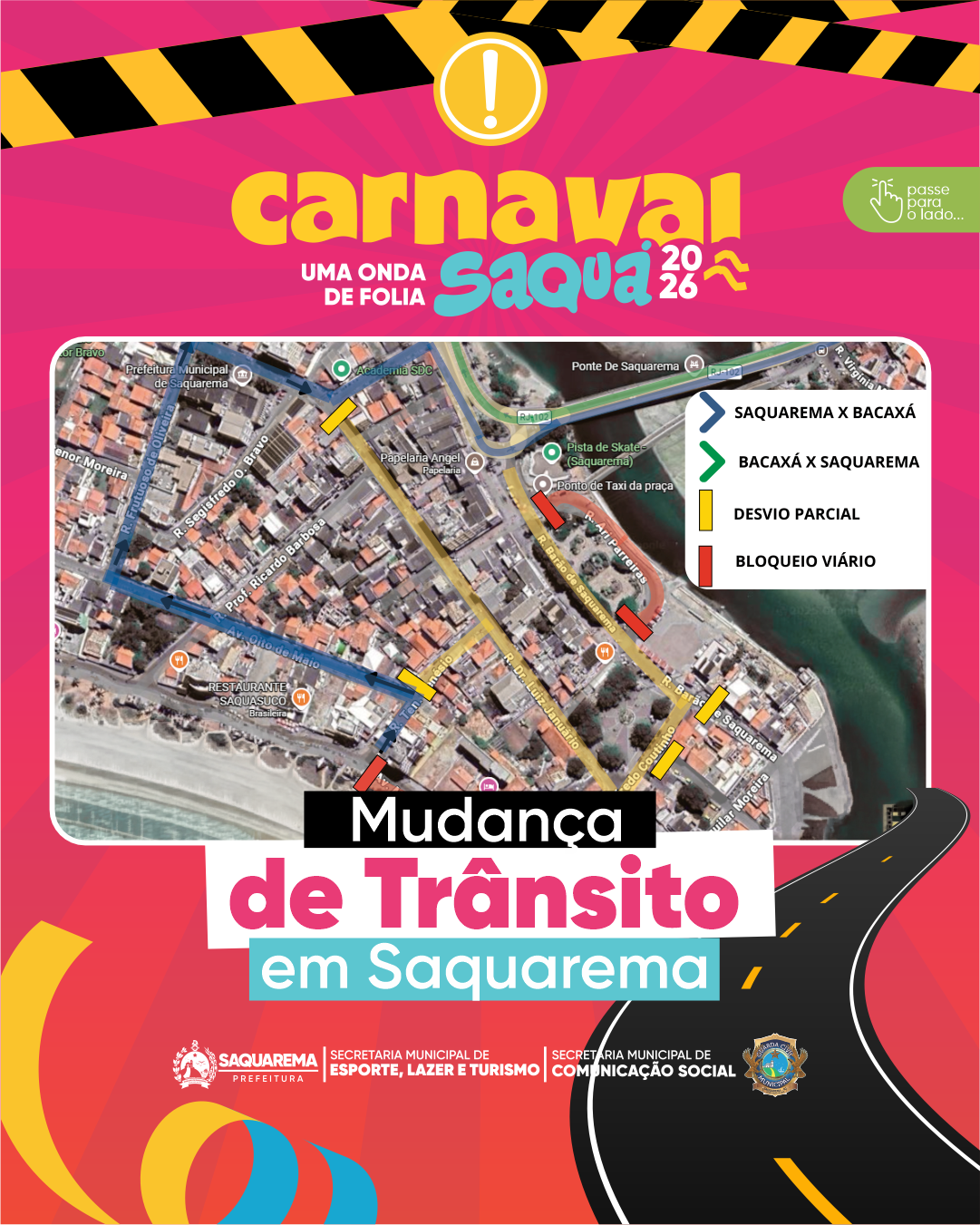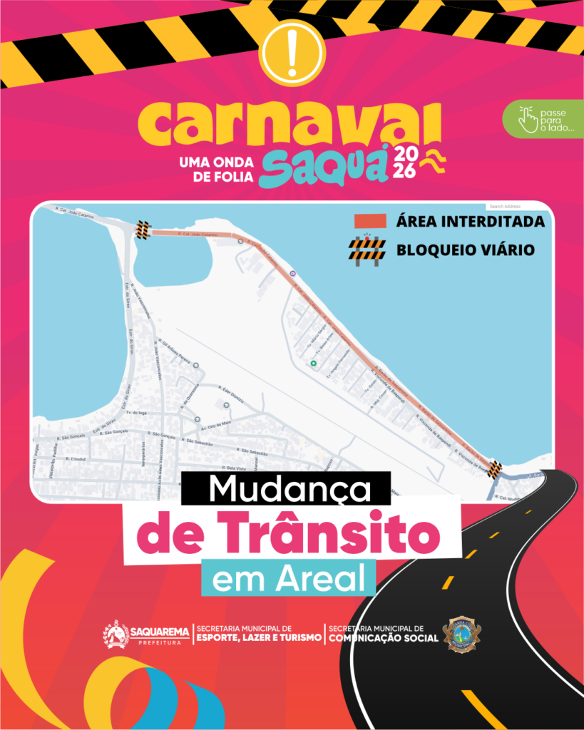 A Prefeitura de Saquarema, por meio da Guarda Civil Municipal, realizará diversas interdições e alterações no trânsito da cidade. As mudanças ocorrerão em razão dos desfiles dos blocos de carnaval, que acontecerão em diferentes bairros do município. Em todos os pontos haverá agentes de trânsito e sinalização adequada, com o objetivo de garantir maior fluidez, mobilidade e segurança para moradores e turistas. As alterações terão início no sábado, dia 14 de fevereiro.