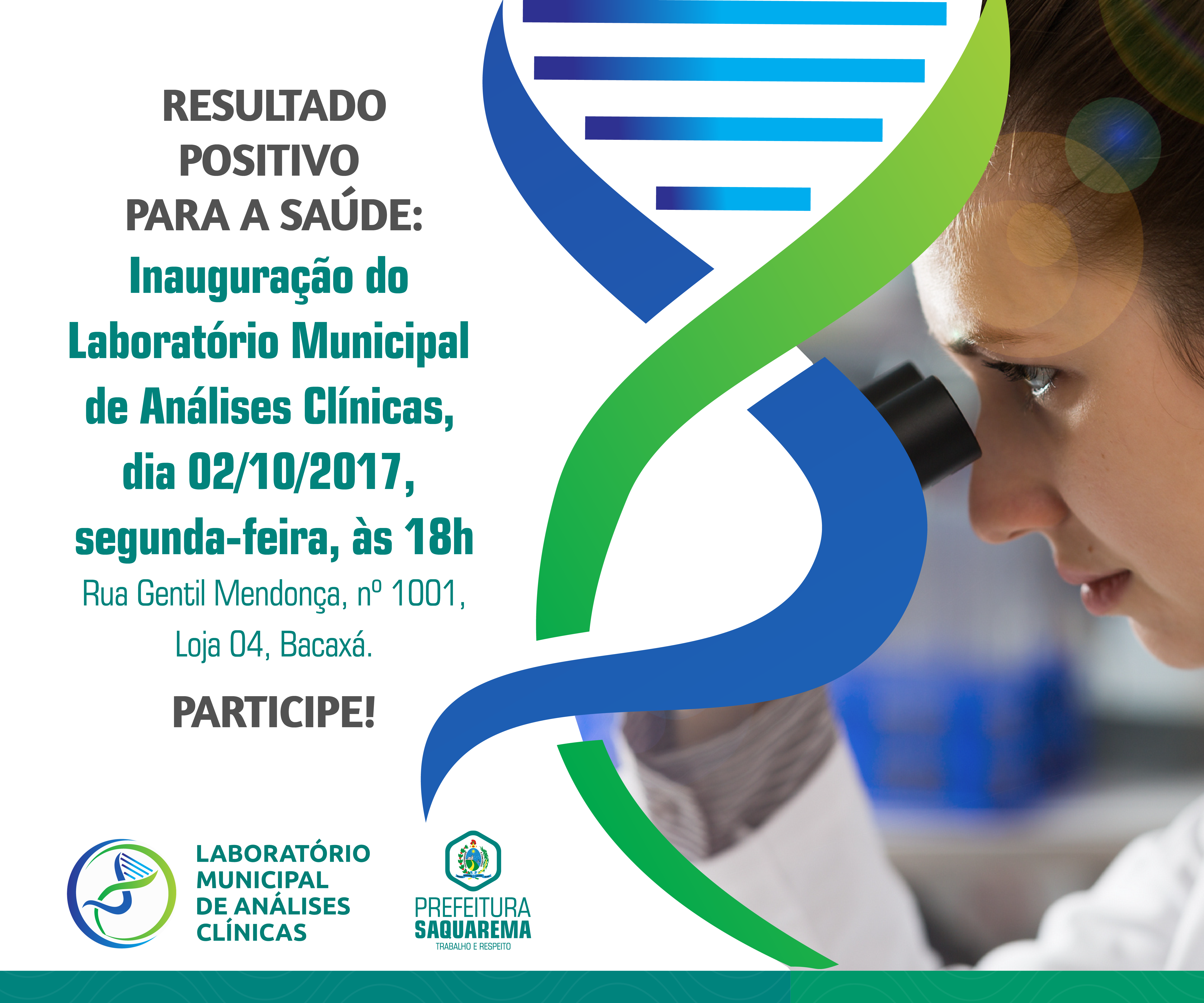 A Prefeitura de Saquarema, através da Secretaria Municipal de Saúde, realizará mais uma conquista para o município: a inauguração do Laboratório Municipal de Análises Clínicas, em Bacaxá.