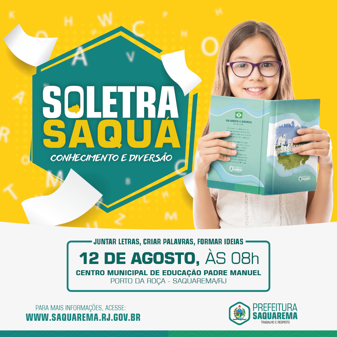 A Prefeitura de Saquarema, por meio da Secretaria Municipal de Educação e Cultura, realizará mais uma edição do Soletra Saquá. A ação será realizada no dia 12/08, no auditório do Centro Municipal de Educação Padre Manuel. Voltado para alunos da Rede Municipal de Educação, a competição de soletração reunirá diversão, aprendizado e conhecimento para o público presente.