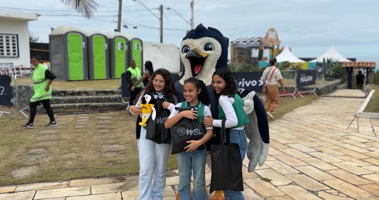 Pequenas jornalistas cobriram os bastidores do Challenger Series da WSL, que começou neste sábado em Saquarema