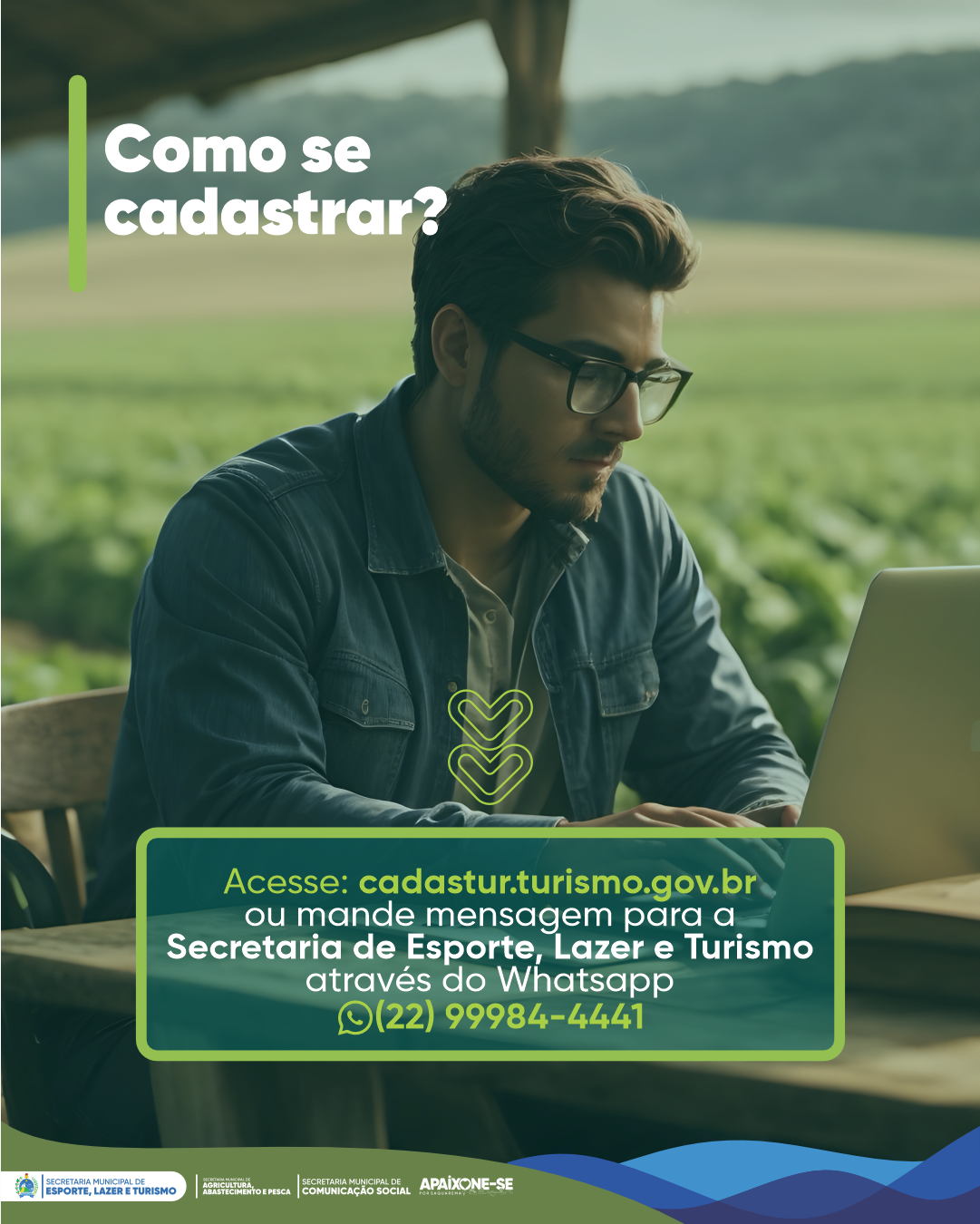 As inscrições podem ser feitas de forma simples e rápida no site cadastur.turismo.gov.br ou pelo WhatsApp da Secretaria, no número (22) 99984-4441.