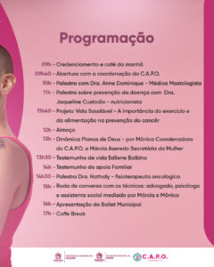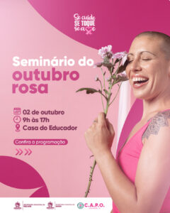 No dia 2 de outubro (quinta-feira), a Prefeitura de Saquarema, por meio da Secretaria Municipal da Mulher, em parceria com a Secretaria Municipal de Saúde e o Centro de Apoio a Pacientes Oncológicos (CAPO), realizará o Seminário Outubro Rosa — um evento gratuito dedicado à conscientização, prevenção e enfrentamento do câncer de mama.
