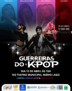 O Teatro Municipal Mário Lago terá dois espetáculos no próximo fim de semana em Saquarema. Nos dias 10 e 11 de abril (sexta-feira e sábado), às 18h, será apresentado o evento de dança “Projeto Primeiro Passo”. E no dia 12 (domingo), às 15h, será a vez da peça “Guerreiras do K-Pop”, envolvendo comédia, música, lutas e coreografias. As duas montagens têm classificação indicativa livre.